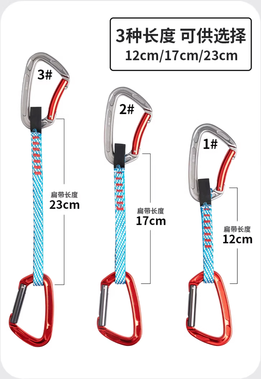 操作意义:快挂(Quickdraw)作为攀岩和登山运动中的关键连接装置,其操作意义主要体现在以下方面:1. 快速连接与效率提升简化操作流程:快挂通过锁门弹簧设计实现单手快速开合,可迅速连接绳索与保护点,减少人工操作时间1。适应动态环境:在先锋攀登中,快挂能快速固定保护点,避免因反复调整装备导致体力消耗或风险增加2. 安全性与受力优化分散冲击力:O型快挂的圆形结构使受力均匀分布,降低绳索局部磨损风险,尤其适合下降操作。