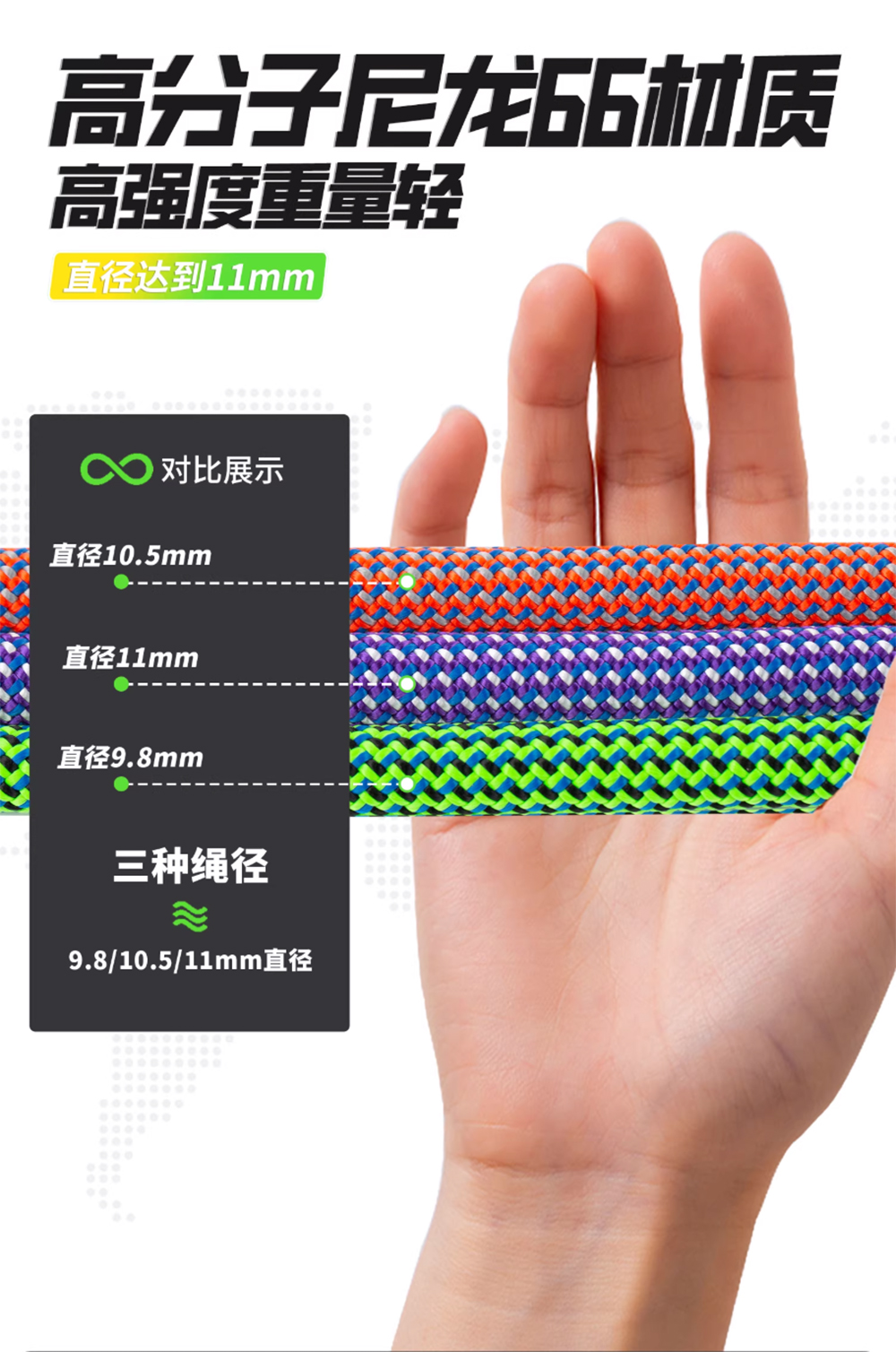 操作意义:动力绳的操作意义与核心功能动力绳(Dynamic Rope)作为高延展性绳索(延展率通常为30%以上),其操作意义主要体现在以下方面: 冲击吸收与安全保护,攀岩与登山:动力绳通过弹性延展吸收坠落冲击力,将80kg攀爬者在冲坠系数为2时的冲击力控制在12KN以下(人体短期承受极限)动态保护系统:配合安全带、锁扣等器材,形成缓冲机制,避免保护站、绳索或攀登者因瞬时过载而失效。